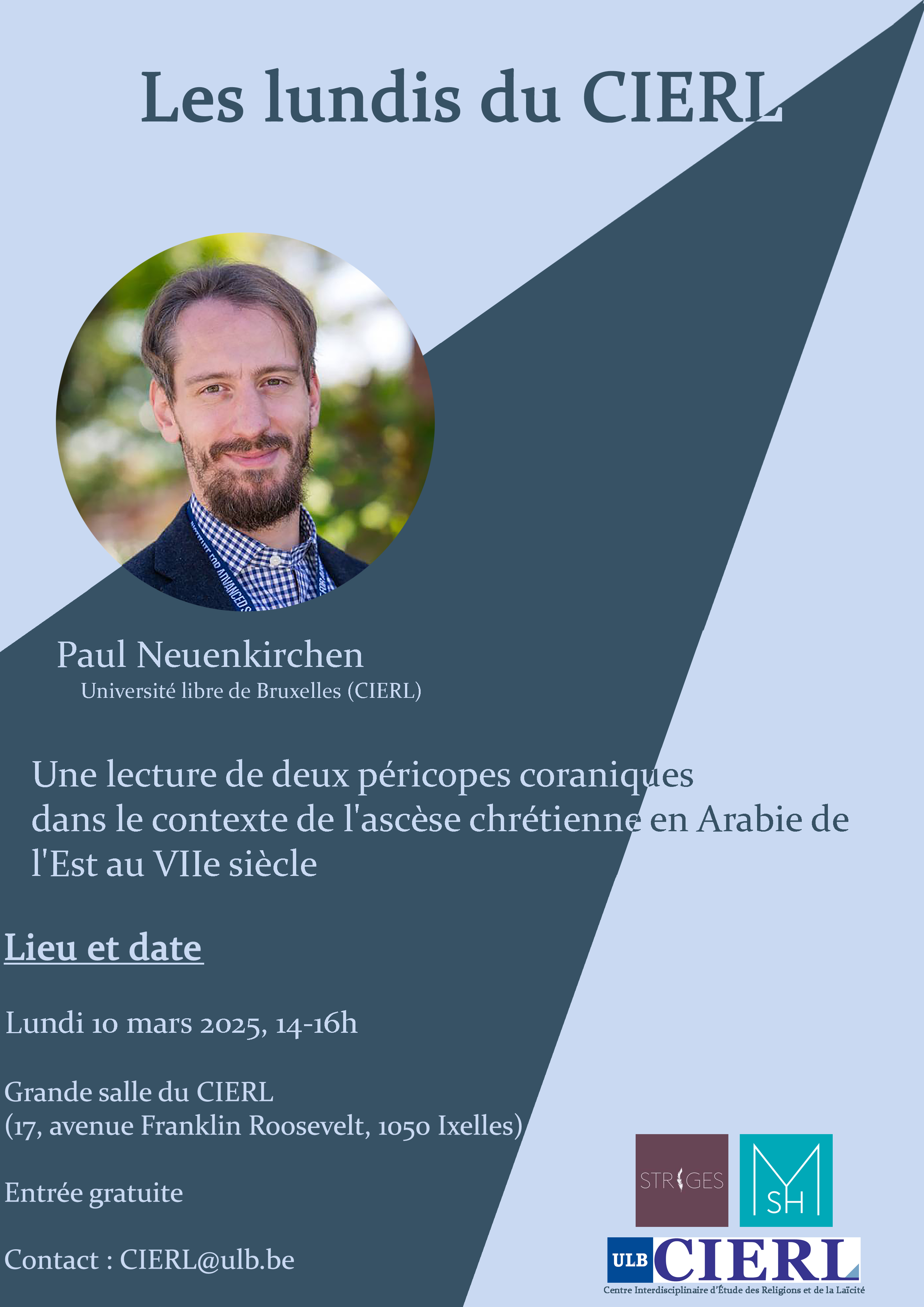 Lundis du CIERL : Paul Neuenkirchen (CIERL) « Une lecture de deux péricopes coraniques dans le contexte de l'ascèse chrétienne en Arabie de l'Est au VIIe siècle »