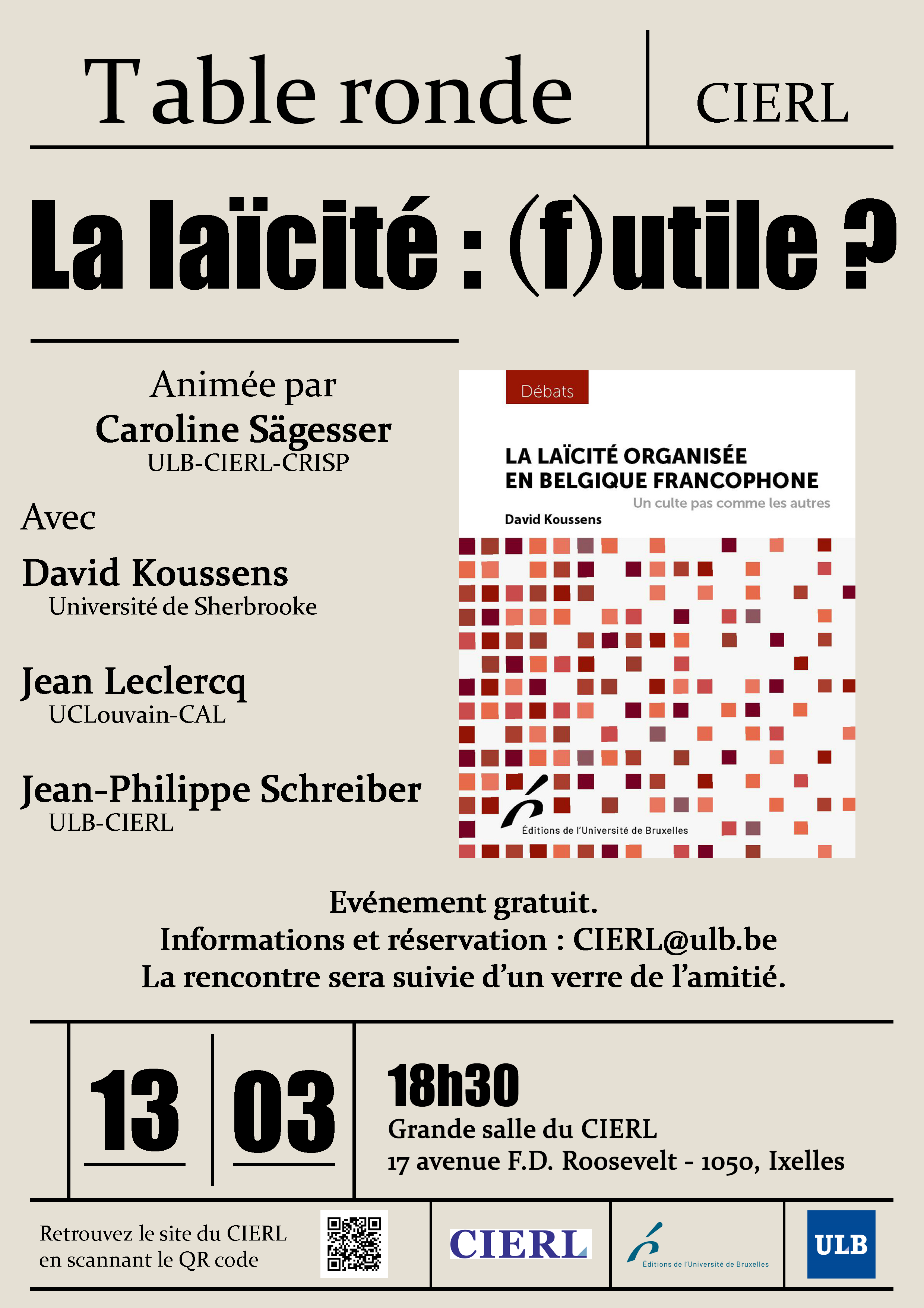 Les laïcités philosophique et politique ont-elles encore un sens à l’ère de la postmodernité ? L’individualisation du croire et le bricolage religieux semblent avoir enterré le clivage entre monde religieux et monde laïque. Pourtant, la laïcité n’a peut-être jamais autant inspiré les polémiques. Comment comprendre ce phénomène ? À l’occasion de la parution du dernier ouvrage de David Koussens, La laïcité organisée en Belgique francophone. Un culte pas comme les autres (ÉUB, 2025), le CIERL organise un débat pour aider à répondre à cette question.
